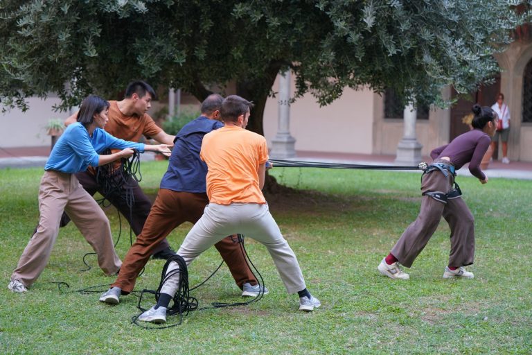 In questo processo creativo è stato centrale il rapporto tra corpo e spazio: i danzatori non si sono limitati ad abitare l’ambiente, ma hanno instaurato con esso un dialogo fisico e percettivo.